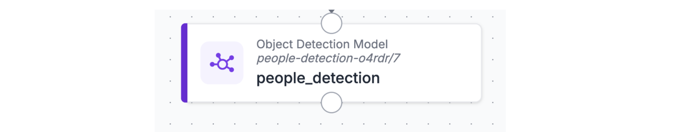 The Object Detection Model block was already added by the workflow scaffold. Click on it and select your trained person detection model from the dropdown. This block receives the image from Inputs, runs inference, and outputs a set of bounding box predictions, one per detected person in the frame. These predictions are what ByteTrack will receive as its input in the next step.