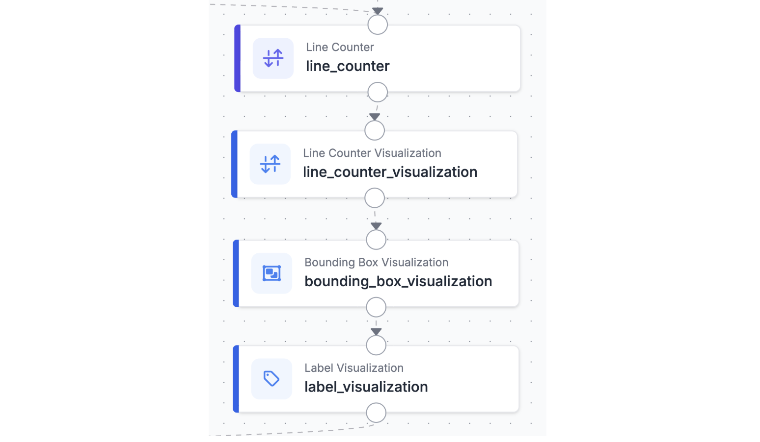 At a high level, the workflow is straightforward: video frame → detect people → assign persistent IDs → count line crossings → annotate and output. The power is in the ByteTrack block, which handles motion prediction and ID association automatically — you don't need to implement any tracking logic yourself.