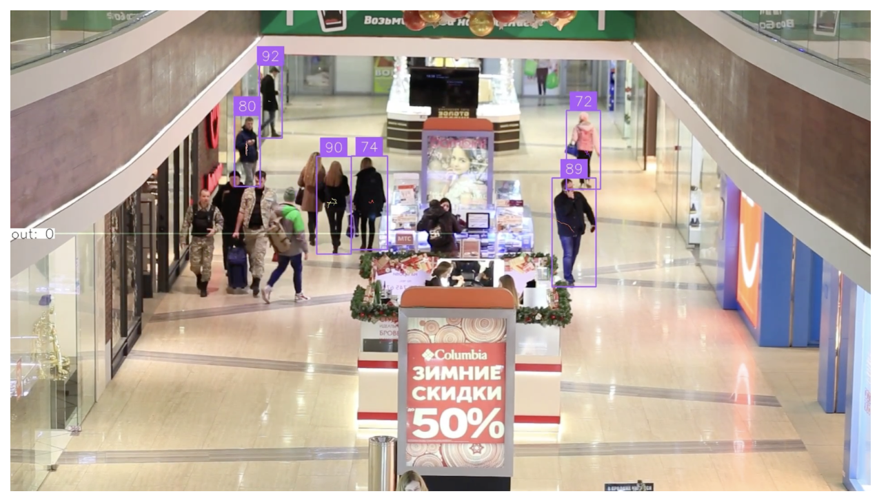 In this tutorial, you built the full pipeline in Roboflow Workflows: a pre-trained people detection model feeds ByteTrack, which assigns persistent IDs to every shopper across frames, and a Line Counter records every entry and exit with direction. The annotated output includes bounding boxes, tracker IDs, trajectory traces, and a live count everything needed to understand traffic patterns at a glance.