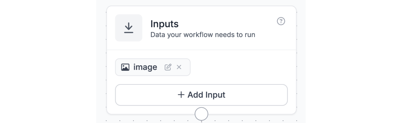 In the Inputs block, configure the workflow to accept a video source. The workflow operates frame by frame, so each video frame is treated as an individual image input. In the Inputs block, you will see a default image input already wired in.