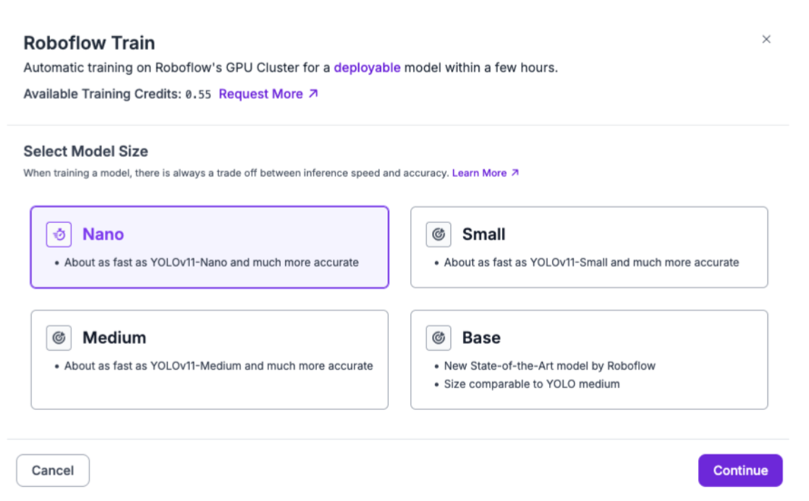 All three RF-DETR model sizes can be trained in the cloud with the Roboflow platform as well as on your own hardware using the RF-DETR repository. The best way to see which model size is best for your use case is to try them.