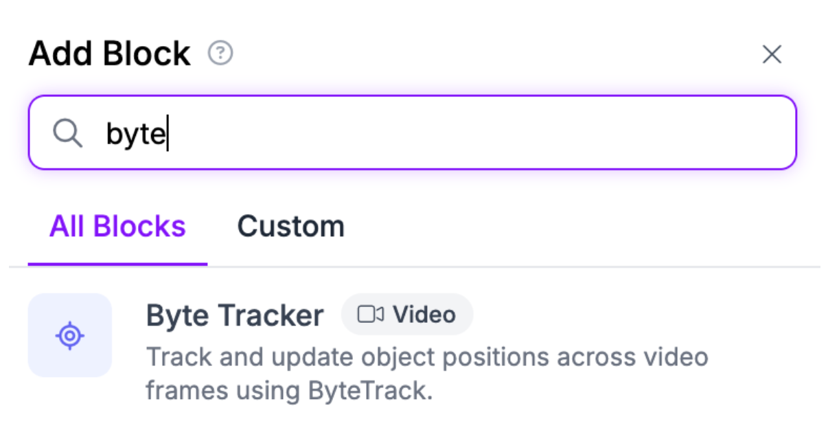 Click “Add Block” then add Byte Tracker to your Workflow: