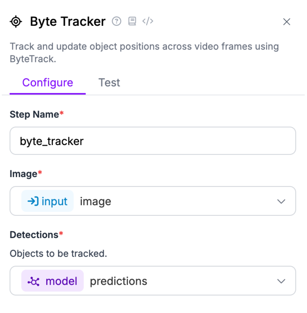Workflows has a pre-built object tracker we can use: Byte Tracker.