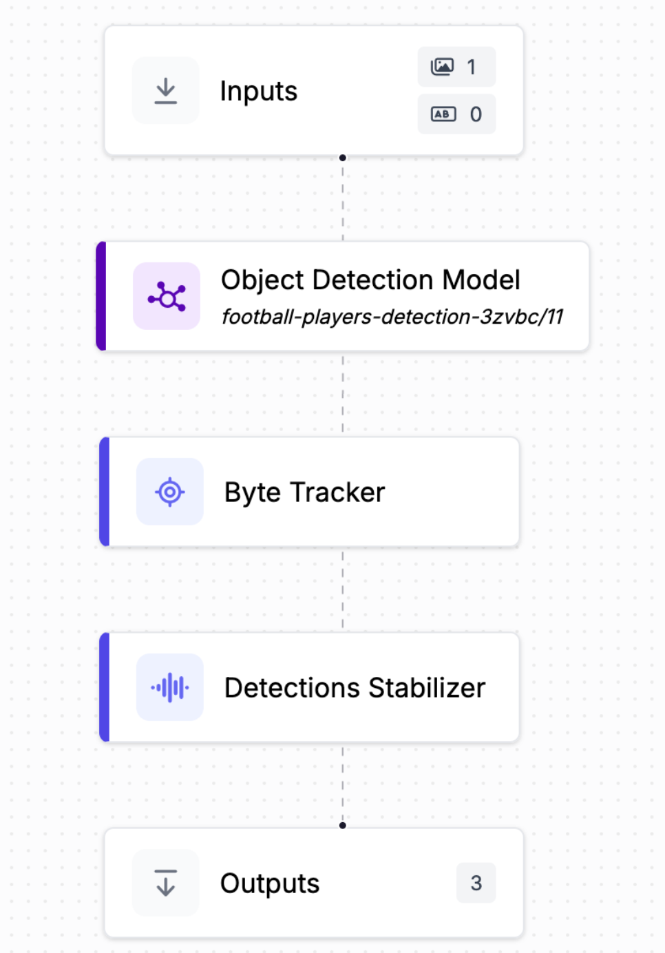 For this guide, let’s add one more step: an object tracker. We can use this tracker to keep track of players between frames. This is useful for any application that involves understanding how players move through the playing field.