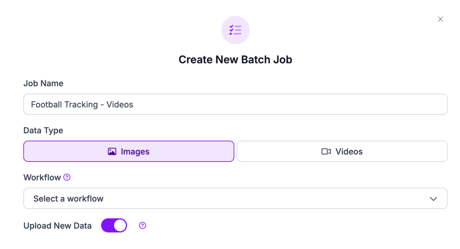 Batch Processing lets you upload batches of images and videos and run AI Workflows on the input data. To use Batch Processing, first create a Workflow in Roboflow, then create a batch job with the input data on which you want to run your Workflow.