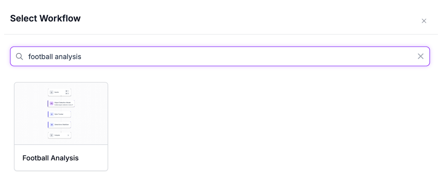 Below, we will show how to use the web interface to create a batch job. We will walk through an example of running a Workflow to process football footage. The results could then be post-processed for applications like ball possession analysis, creating projection maps of where players were on the field, and more.