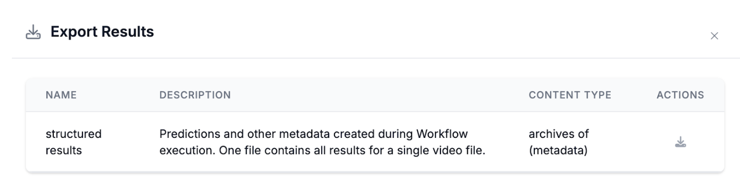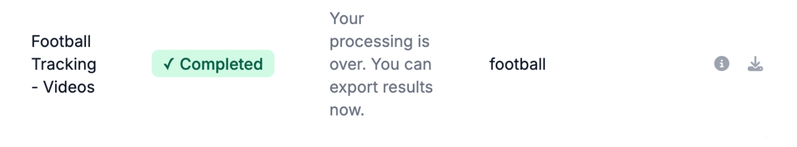 Once your job has finished, you can export the results for use in your application. To do so, click the download icon on the right side of the row that corresponds to the job that has finished: