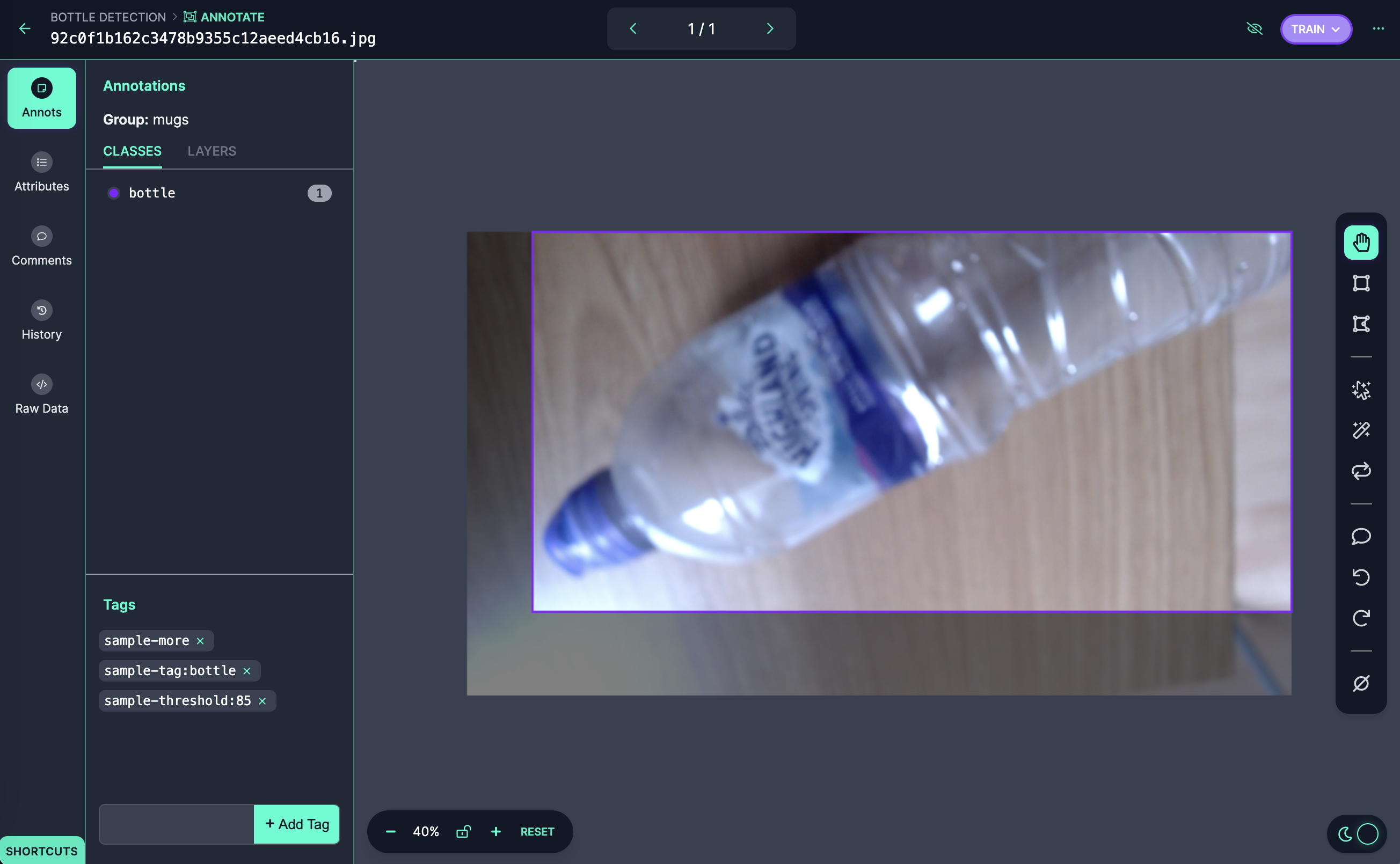 sample-more: This tells Roboflow Collect you want to gather more images like the one specified.sample-threshold:85: This tells Roboflow Collect you only want to gather images when they are at least 85% similar to the image you have saved. We recommend starting with 85% and tuning as necessary.sample-tag:bottle: This instructs Roboflow Collect to add a tag called “bottle” to any images uploaded that are related to the one with which the tag is associated.