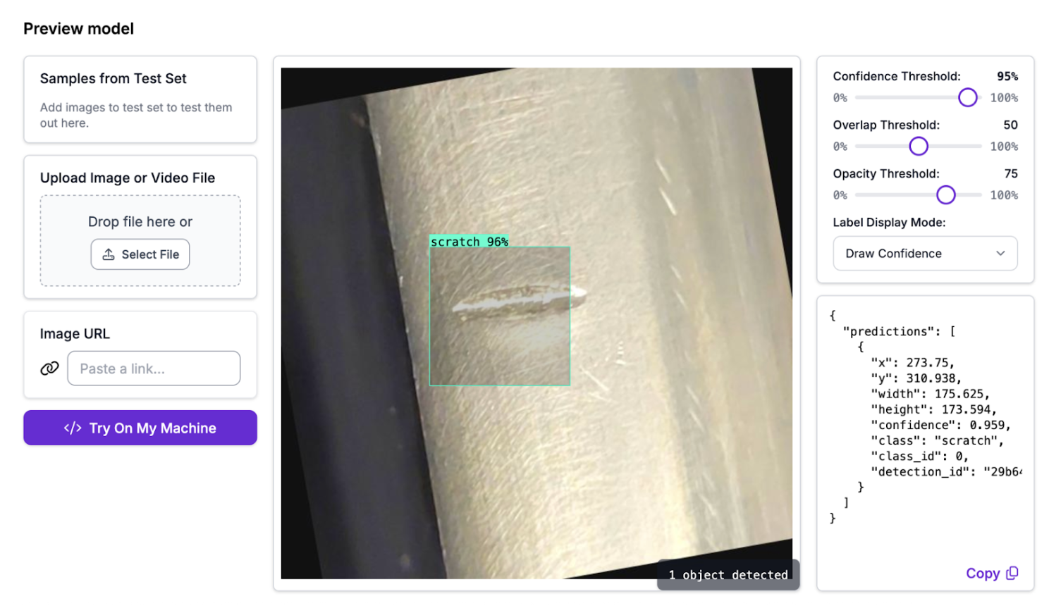 result = client.infer("image.jpeg", model_id="metal-defect-detection-d3wl6/9")