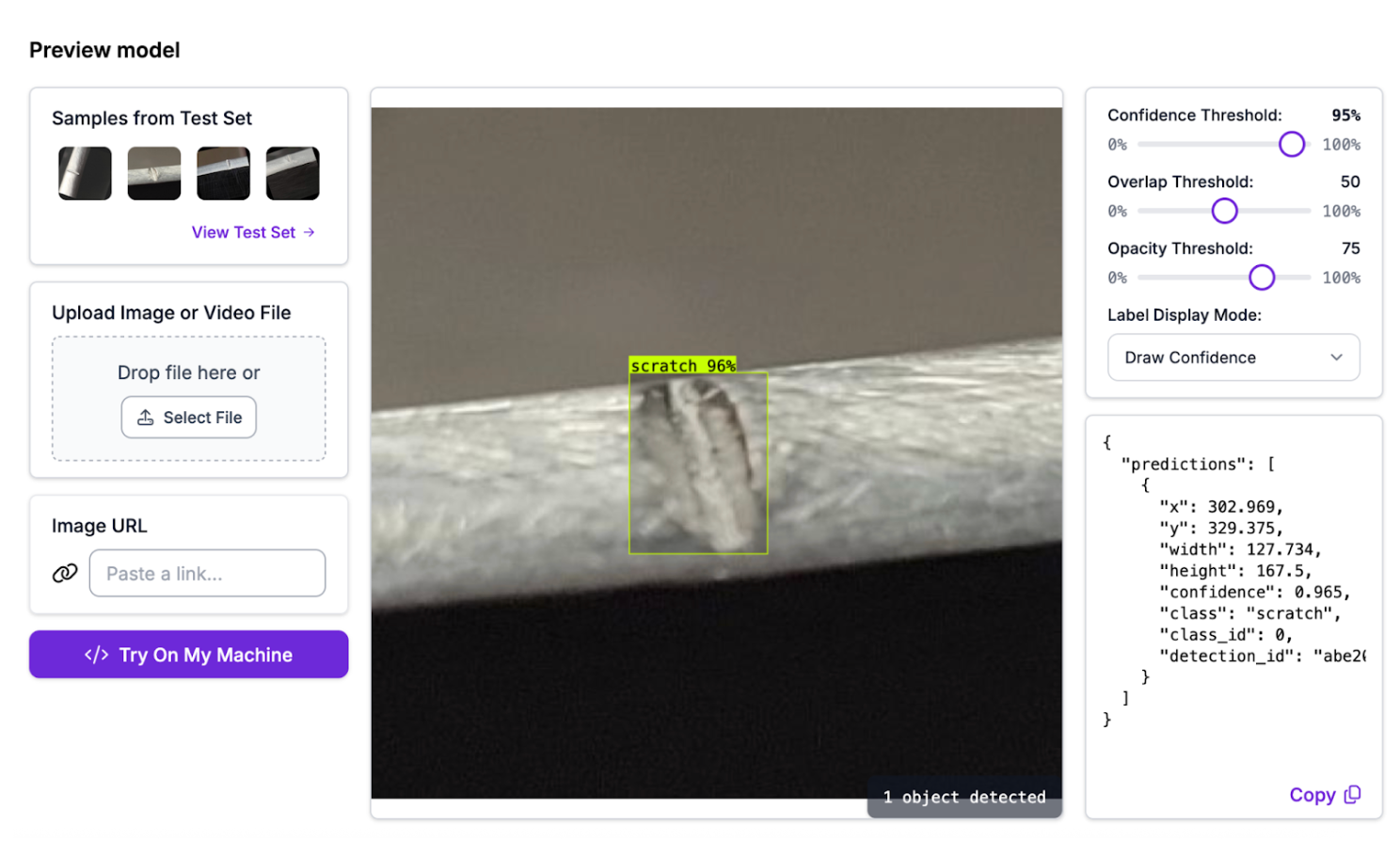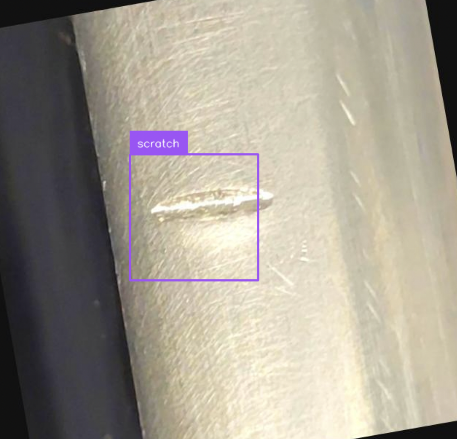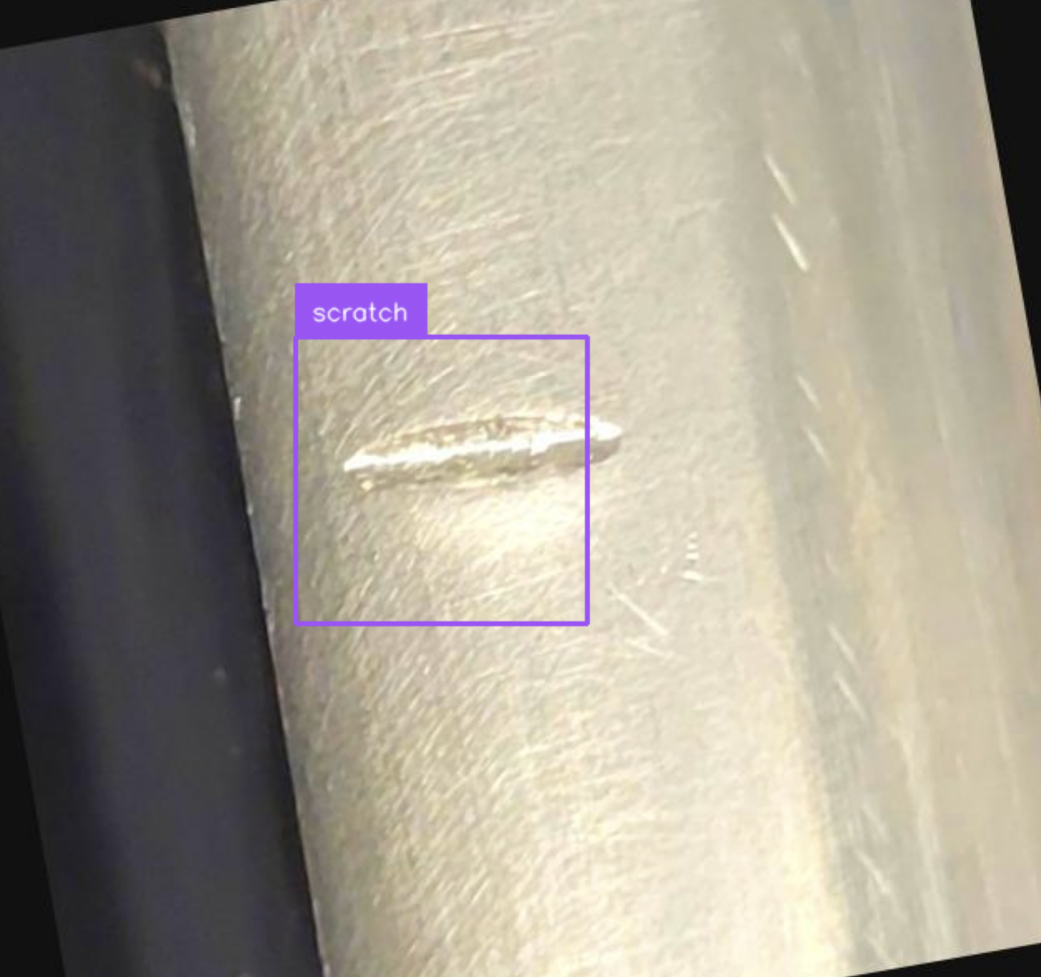 Here is an example showing our Instant model identifying a defect in a piece of metal: