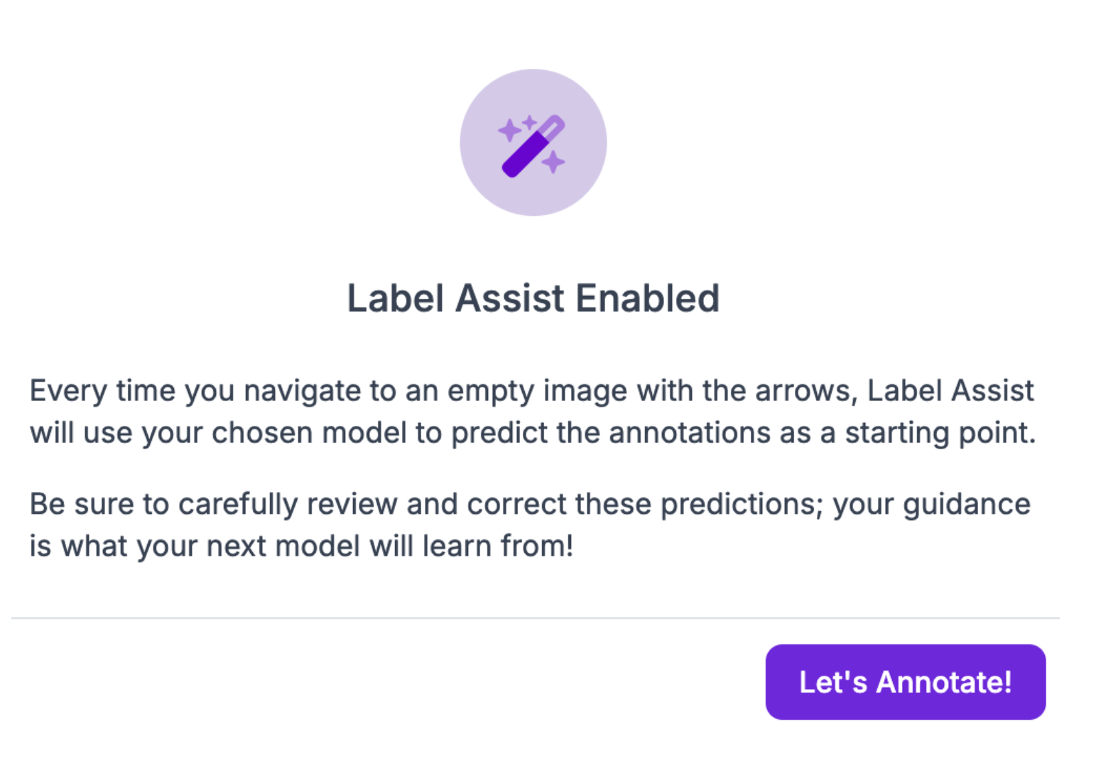 Then, click “Let’s Annotate” to start labeling with Label Assist: