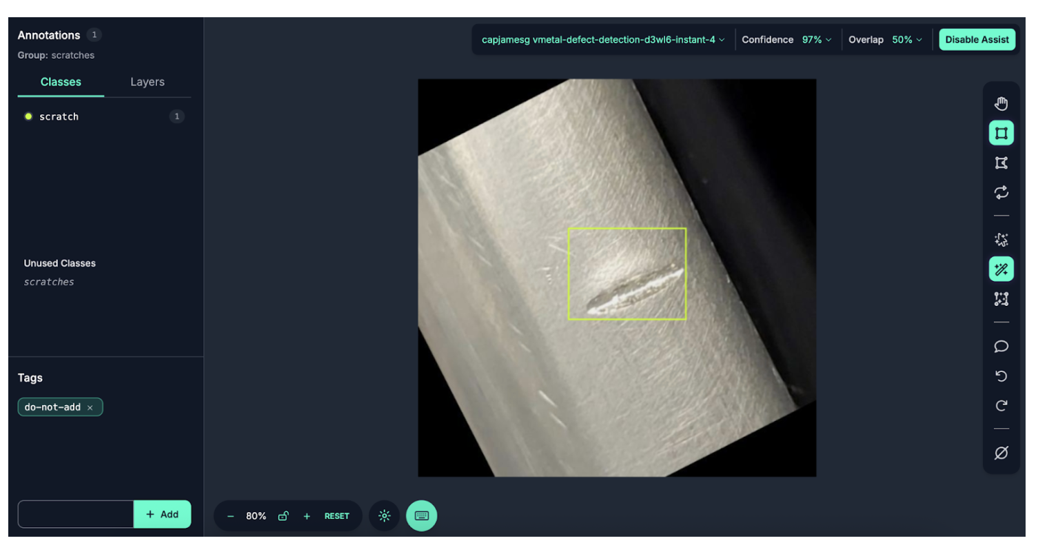 You can manually adjust the bounding boxes drawn by Instant if needed to be tight around the object(s) you want to identify. To learn more about annotation best practices, refer to our computer vision labeling tips blog post.