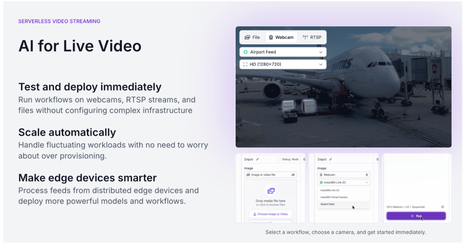 - Workflows: A low-code canvas to chain models together (e.g., detecting an object, then cropping and running OCR on the result).
