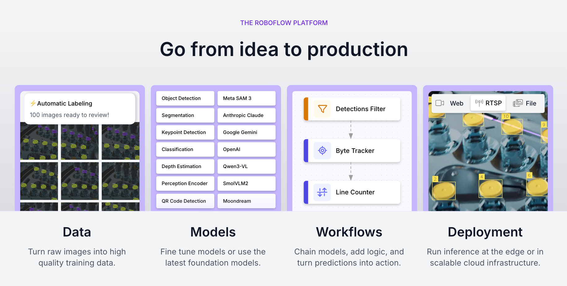 Whether you’re a solo developer hacking together a weekend project or an engineer at a Fortune 100 company tasked with automating a production line, Roboflow is designed to get you from idea to deployment, fast.