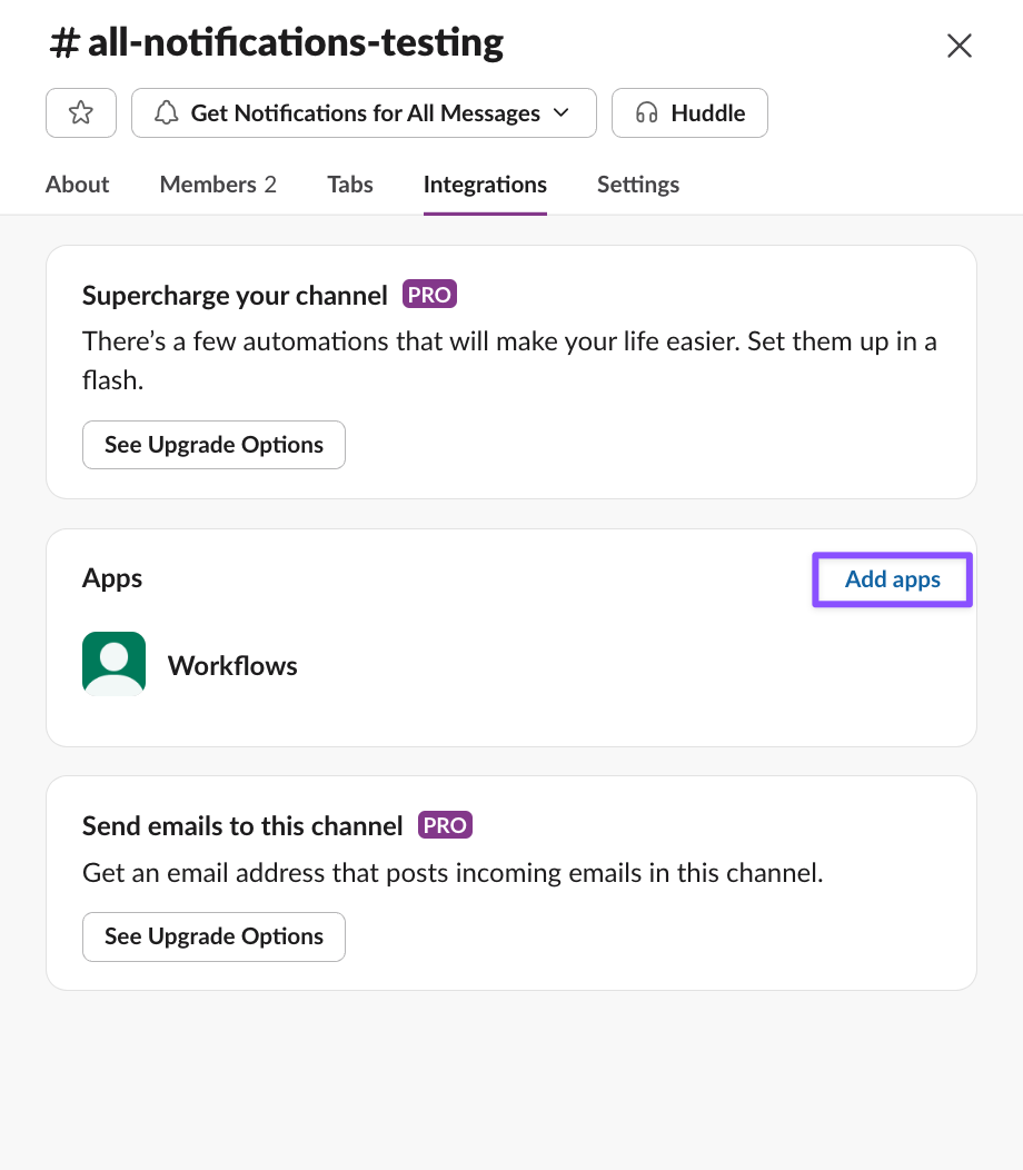 Navigate to the slack channel where you’ll be sending messages, find the channel members section, select integrations, and add the app you just created to your channel.