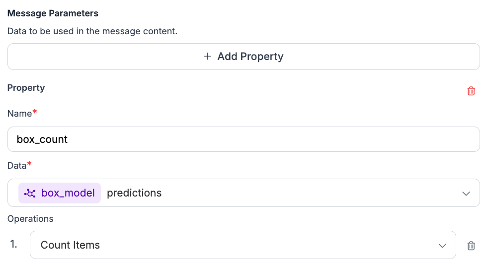 Configure the message parameters to be used in the message content. These must match the name of the parameters used above.