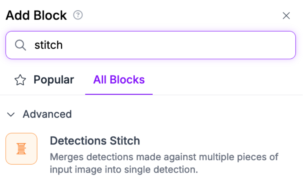 You can use the Detections Stitch block to combine detections. Add a Detections Stitch block: