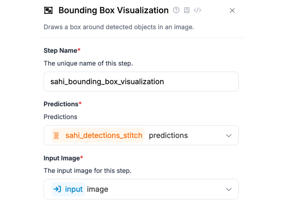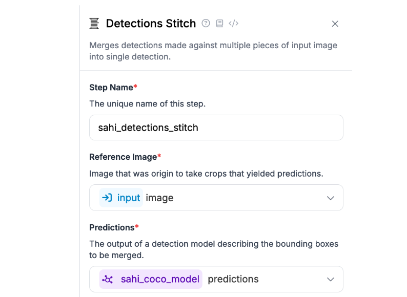 So far, our Workflow slices an input image, then runs inference on each slice. We need to combine the detections to complete our use of the SAHI technique for small object detection.