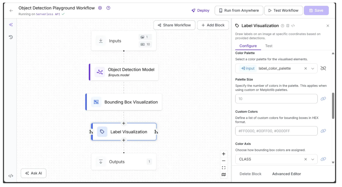 The final image shows bounding_box_color_palette and label_color_palette that have been added as inputs, both of which are strings with default values of ‘ROBOFLOW’ and ‘Matplotlib Pastel1’, respectively.