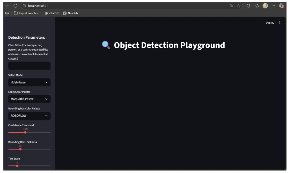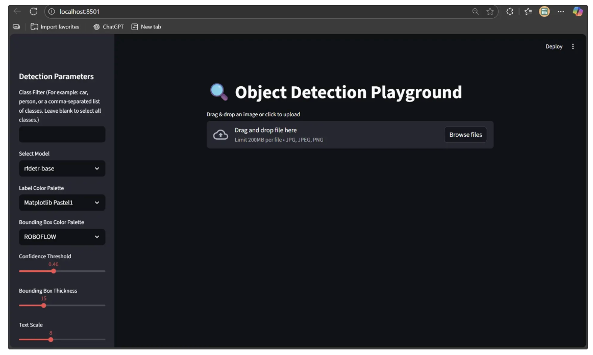 pip install inference-sdkThe Object Detection Playground is now fully usable on your local machine.