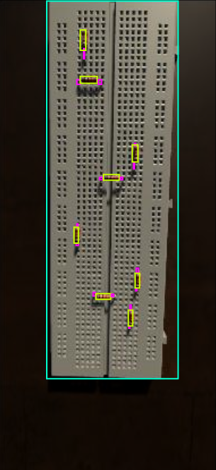 In this post, I’ll show how I made synthetic data involving random circuits to train a computer vision model able to detect resistors and wires on a breadboard.