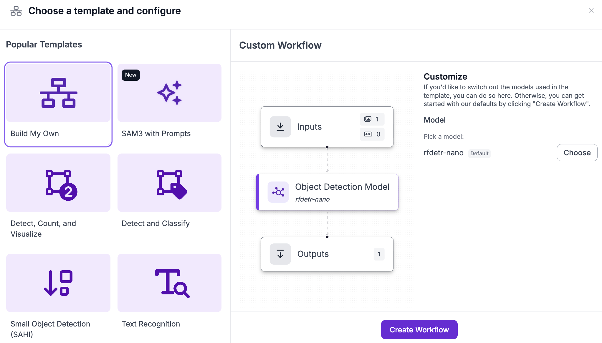To learn more about Roboflow Workflows and the blocks available, check out the Roboflow Workflows Blocks gallery. To see templates of workflows, refer to our Workflows Templates gallery.