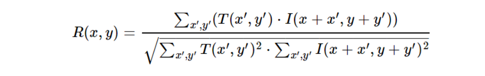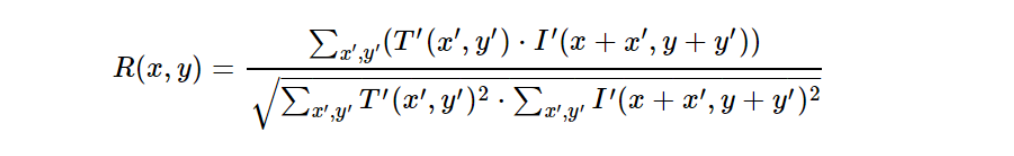 - cv2.TM_CCOEFF_NORMED: Normalized correlation coefficient.