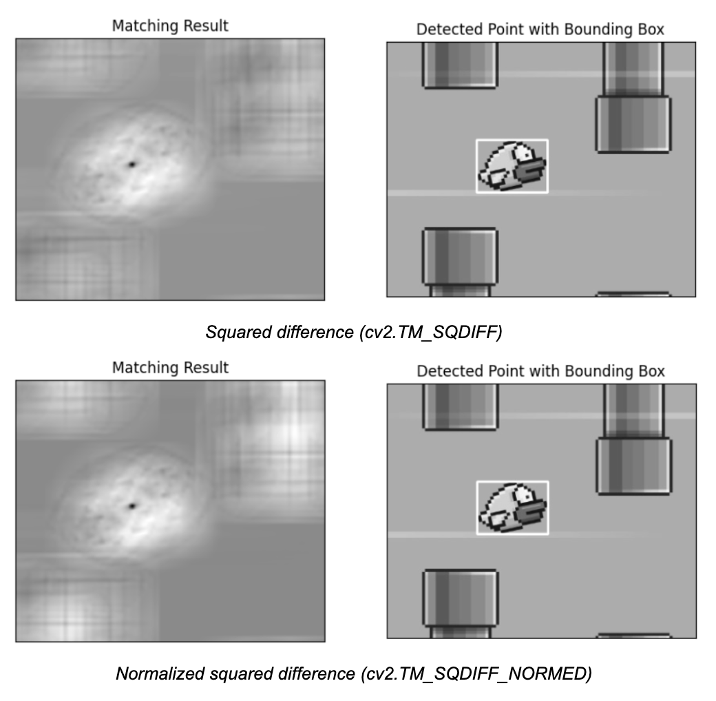 - cv2.TM_SQDIFF_NORMED: Normalized squared difference.