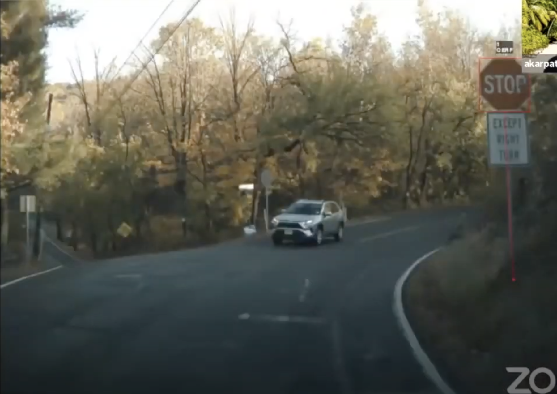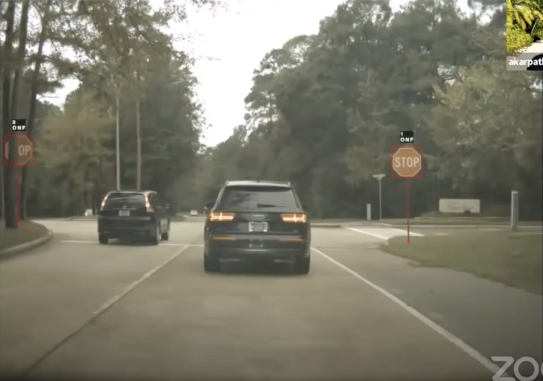 Seeing a stop sign does not always mean it is in an active state requiring one to stop their vehicle. (Credit: Karpathy, Tesla)