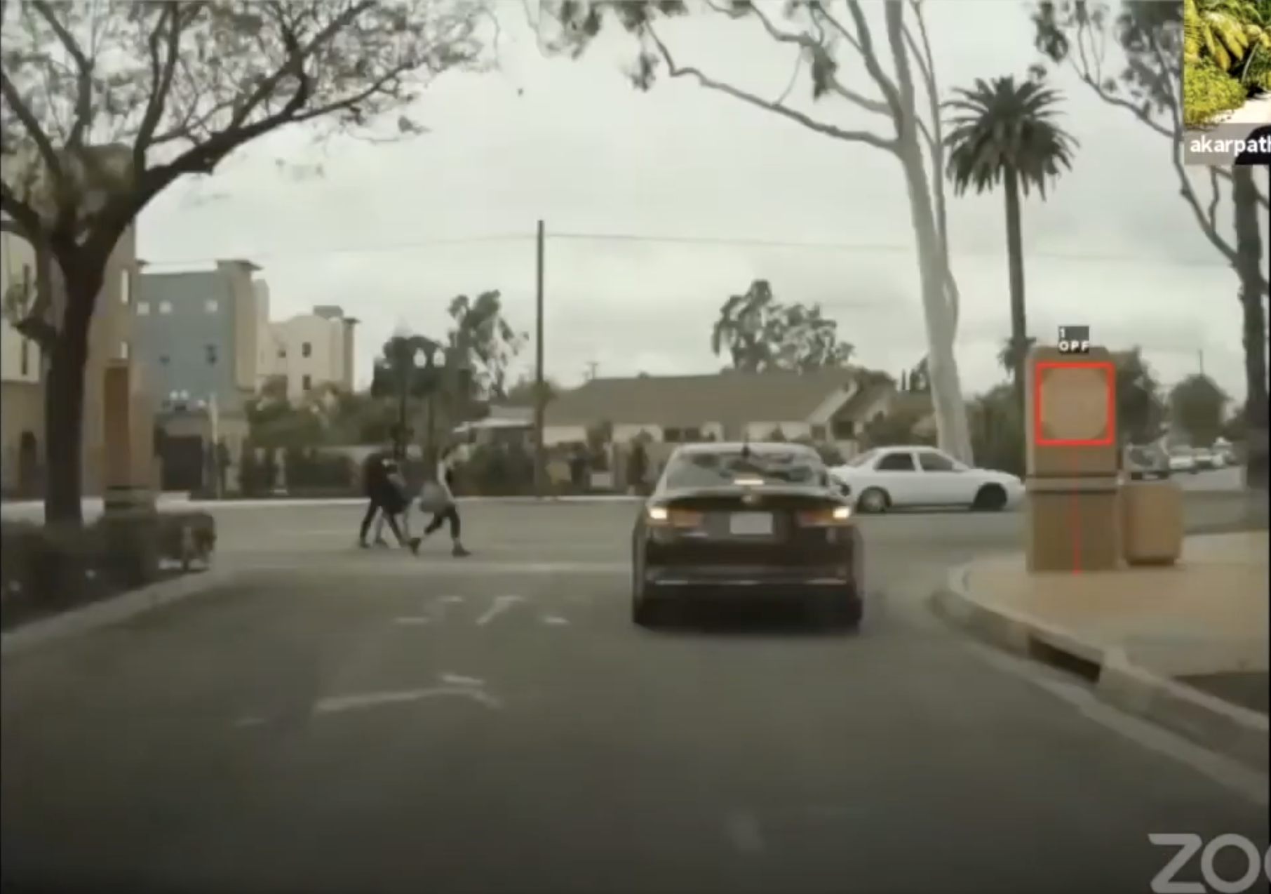 Occlusion blocking the view of stop signs. (Credit: Karpathy, Tesla)