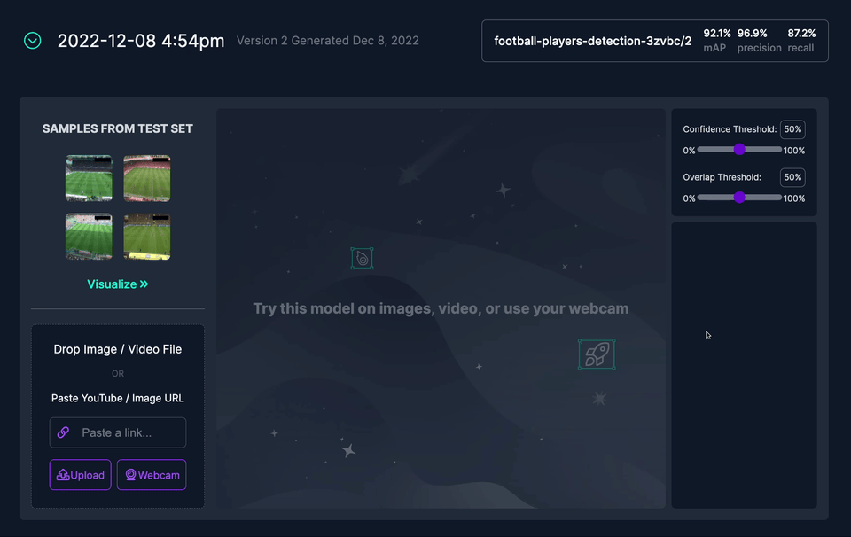 If you feel like having a little fun, you can test my model. It is available on Roboflow Universe along with my dataset. Just drag and drop your test image. Note that the version available online is slightly different than the one I used in my demo.