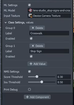 Refer back to Step 4 to remember the order in which the classes were presented to you, in this case, "crosswalk" then "stop sign". Update the labels in the Lens Studio template accordingly, ensuring they match the desired classes. Delete any unnecessary labels.