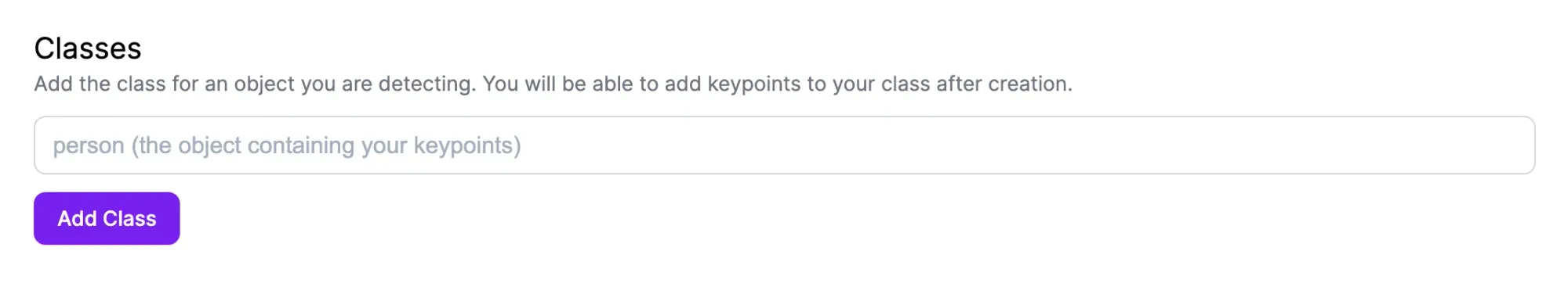 Next, we need to set a skeleton for each class we want to identify. You can do so from the Roboflow class management page. Click “Classes” in the Roboflow sidebar. Then, add all of the classes that you want to use in training your model.