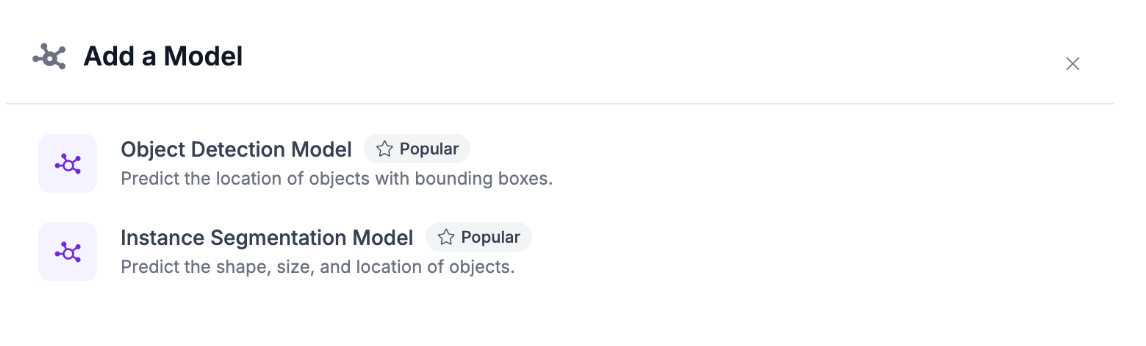 Then, choose a model size. We currently support one size: RF-DETR Base. Base models can run at over 100 FPS on an NVIDIA T4 GPU, and at 25 FPS on up-to-date NVIDIA Jetson devices.