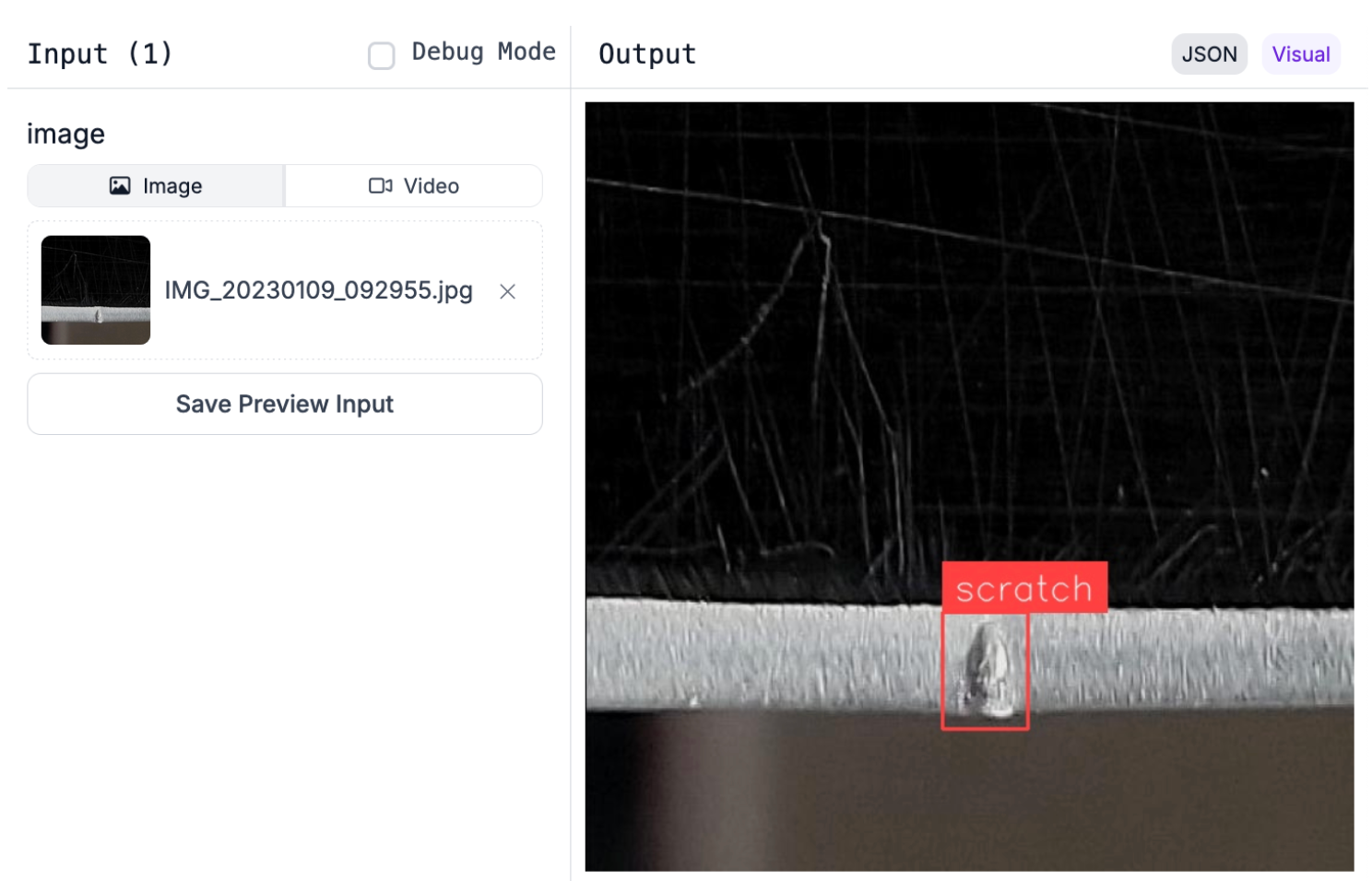 Batch Processing will run your Workflow on your input images or videos, then return the results as a file where each line contains JSON representations of your Workflow output.