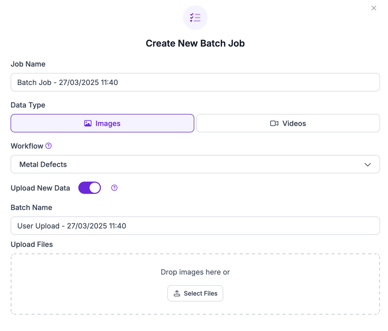 Then, upload the images or videos you want to process. Click “Create Batch Job” to start the job.