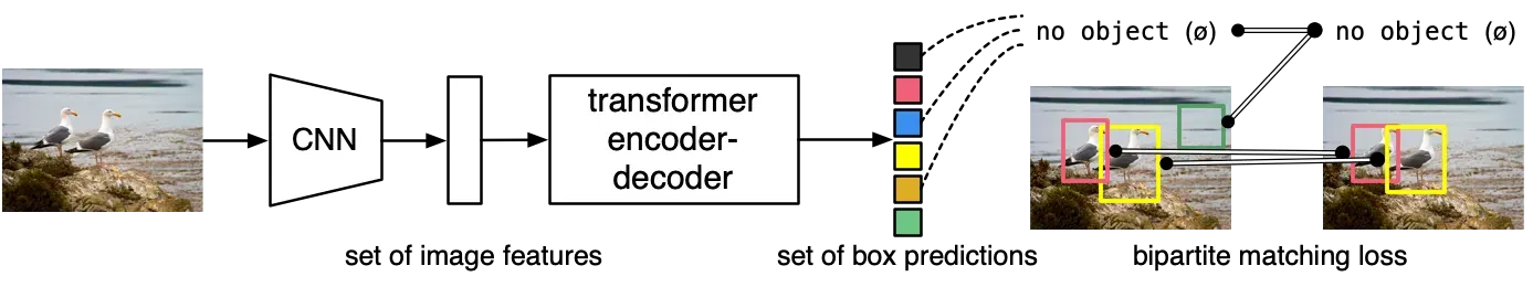 - Training Approach: DETR employs a bipartite matching loss during training to establish associations between predicted and ground truth bounding boxes. This approach allows DETR to handle cases with varying numbers of objects and avoids the need for anchor matching.