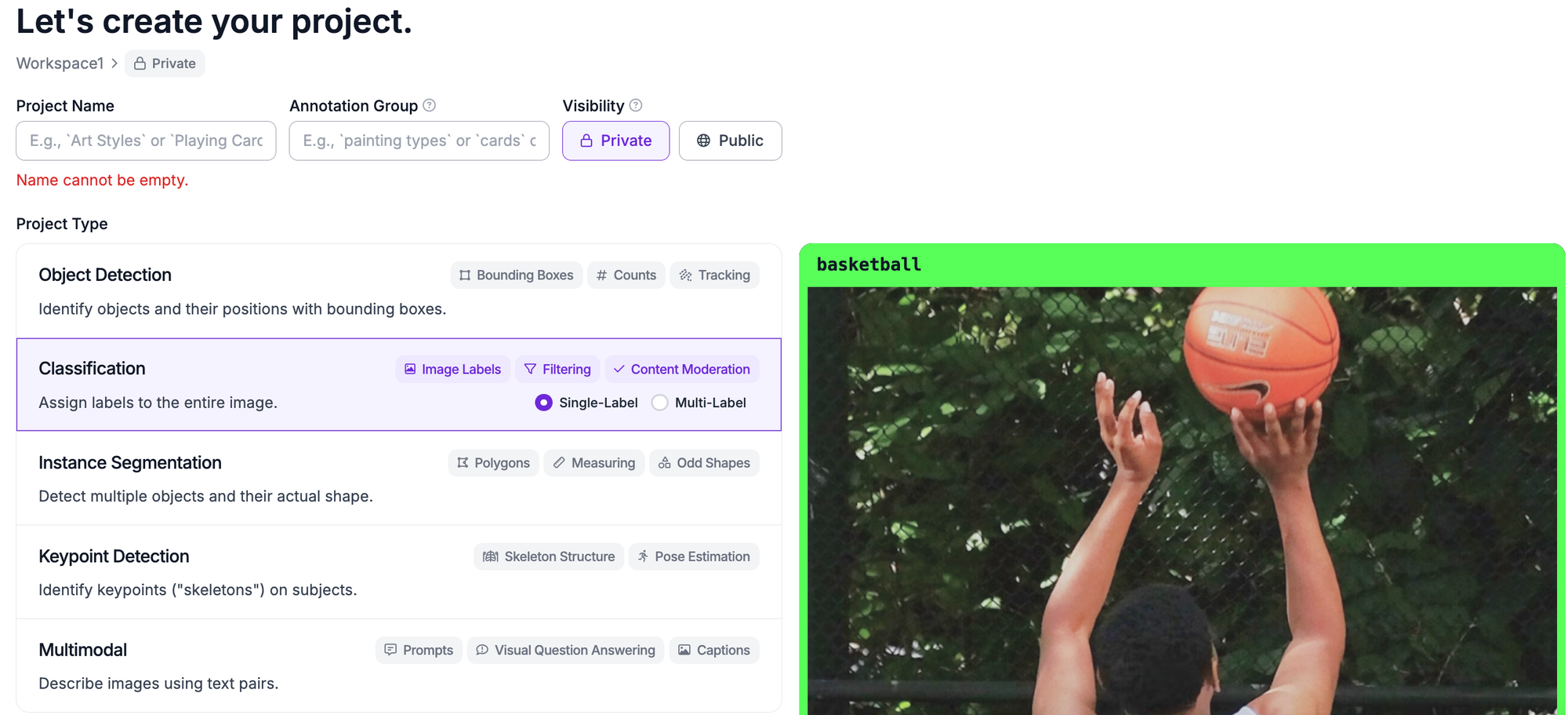 If you forked a dataset from Roboflow, you can skip to Step #2. Otherwise, follow the instructions below to learn how to create a project from scratch and upload your own data.