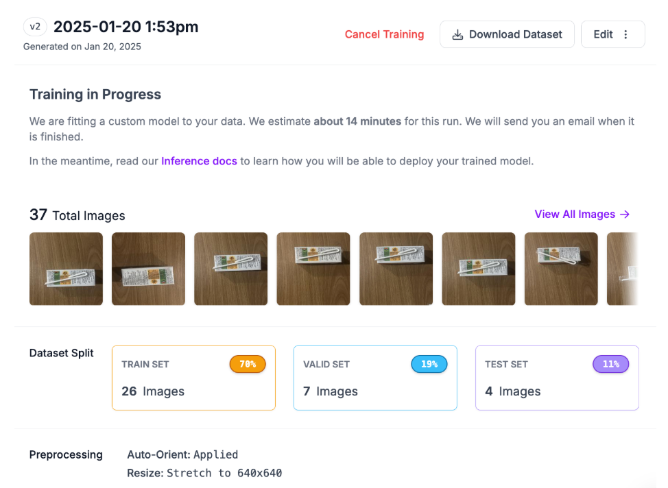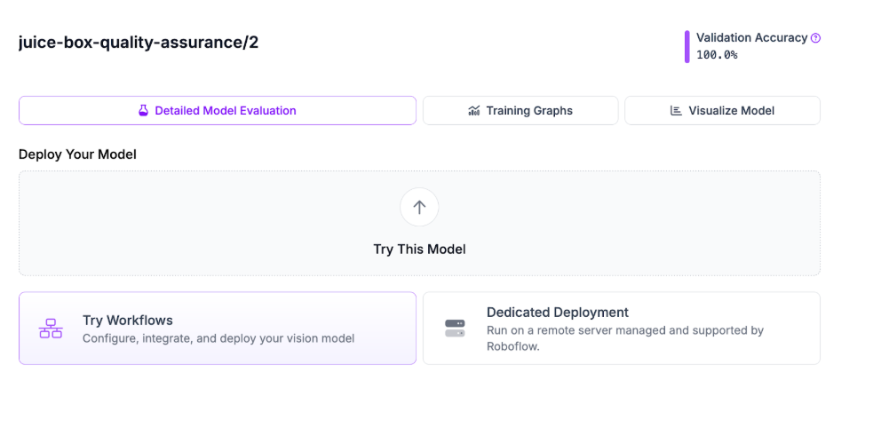 With a trained model ready, the next step is to try it out on some images and prepare for deployment. For deployment, we are going to use Roboflow Inference, an open source computer vision inference server.