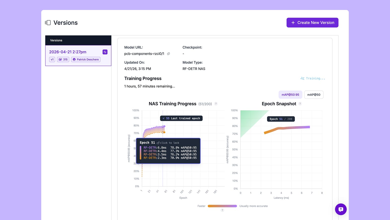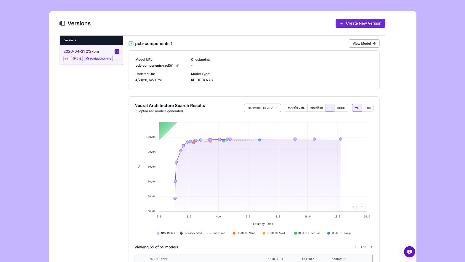 Peter Robicheaux, Machine Learning Lead at Roboflow, highlighted the real-world impact of this capability: “I’ve seen situations where people select a large image resolution and spend valuable time training at that scale. When it’s time to test and deploy, they discover the model doesn’t hit their performance targets and they have to start over. Neural Architecture Search preempts that by removing the need to experiment with those settings yourself. You get the best model for your data the first time.”