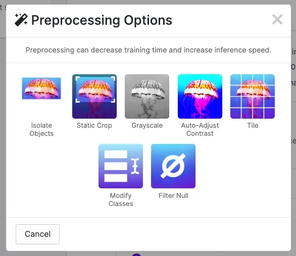 After labeling the data, we can apply preprocessing and augmentation to increase the size of our dataset and account for cases that may give our model difficulty predicting the object.