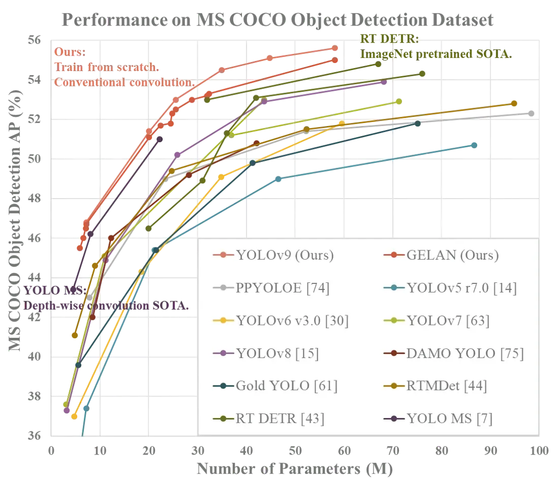 According to the project research team, the YOLOv9 achieves a higher mAP than existing popular YOLO models such as YOLOv8, YOLOv7, and YOLOv5, when benchmarked against the MS COCO dataset.