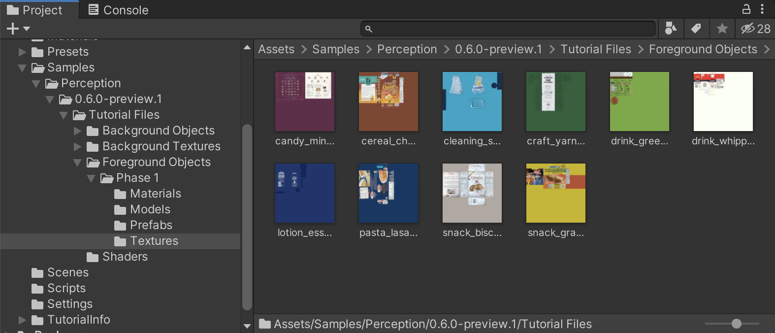 The Tutorial Files come with sample models and textures for products like tea and cereal that you can use to build a retail store item detection model.