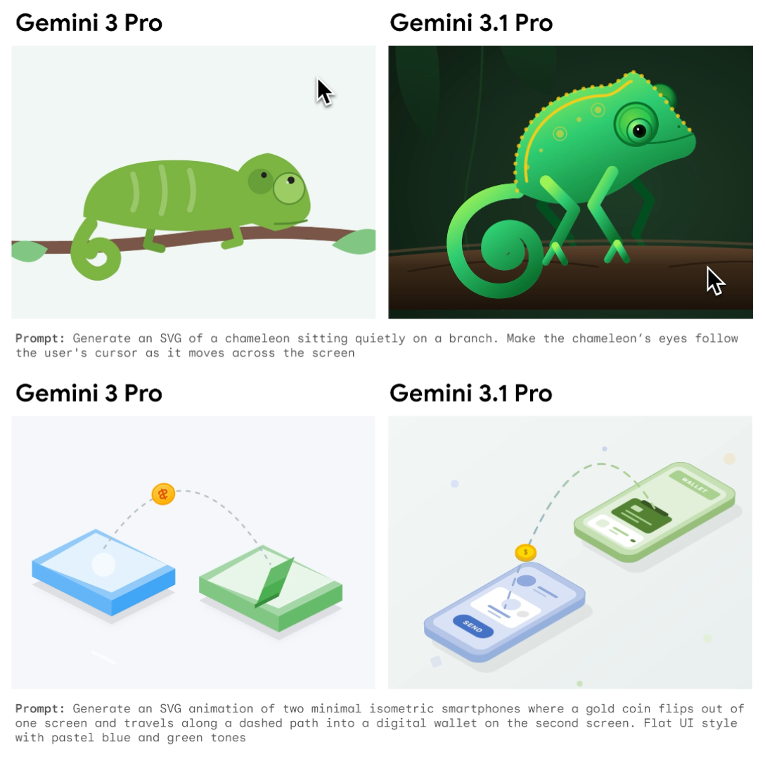 Examples illustrating the enhanced creativity of Gemini 3.1 Pro compared to Gemini 3 are presented below.