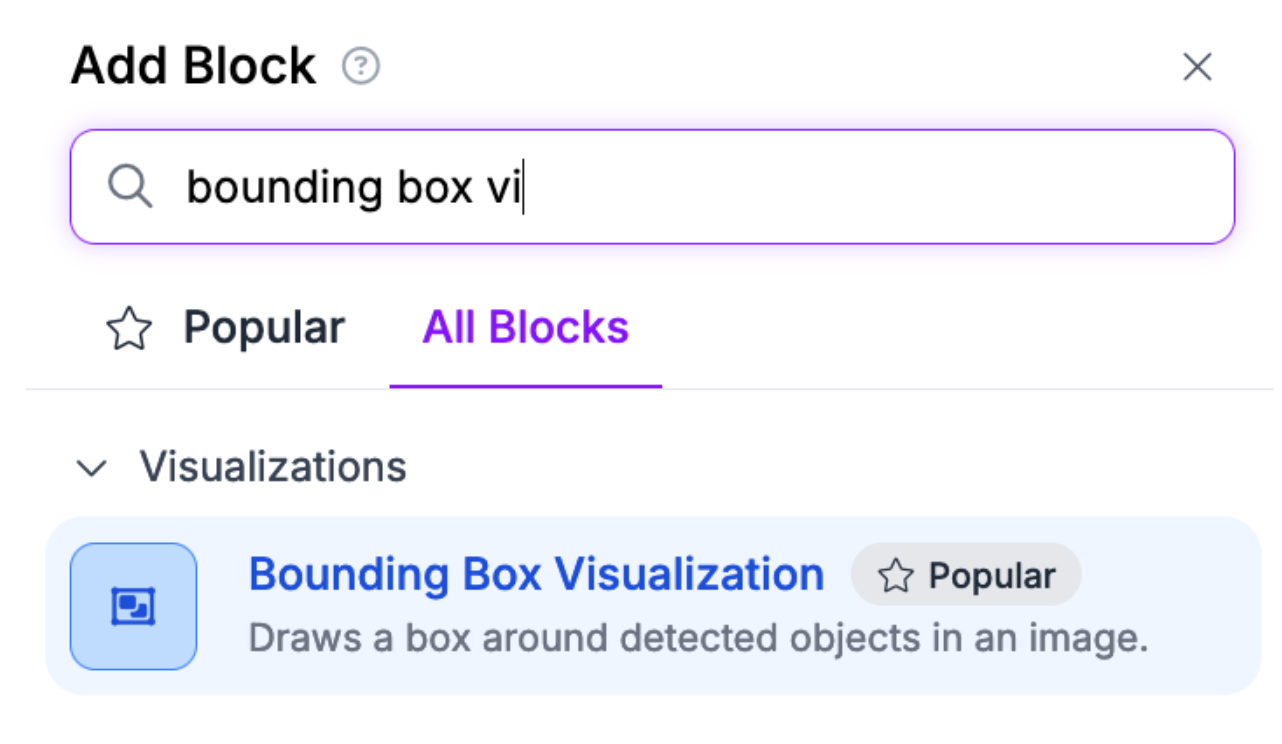 To visualize your model predictions, add a Bounding Box Visualization block: