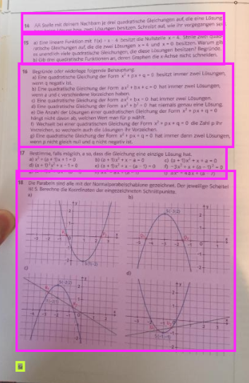 A solution to this problem would be to extract text from the documents so that instead of sending large images back and forth electronically, just the text is sent, consuming less bandwidth. While there are many services out there that offer automated document analysis, I wanted to take it a step further and see whether it is possible to have a custom machine learning model detect tasks from school books. The goal is to keep the task structure from the document while drastically reducing the size of what needs to be sent.
