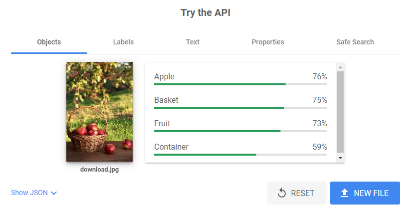 As seen in the example image, this could somewhat explain the inaccuracies that Bard made that were present in our testing, recognizing one apple, one fruit, one container, and one basket.