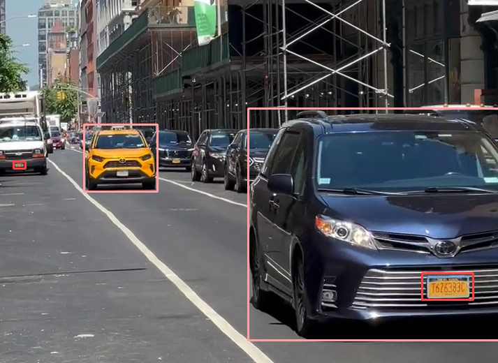 Now that we have a frame with a unique and clear vehicle and license plate, we'll need to filter the vehicle and license plate that are closest. We'll do this in a background task with another polygon zone that is slightly larger than our detection zone. We'll then crop the regions of interest of the license plate and the vehicle and display them to the user.