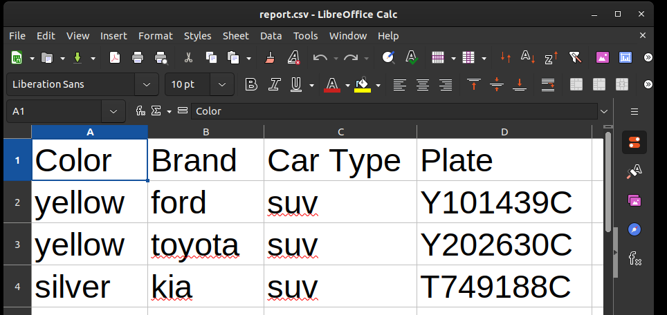 fieldnames = ["Color", "Brand", "Car Type", "Plate"]