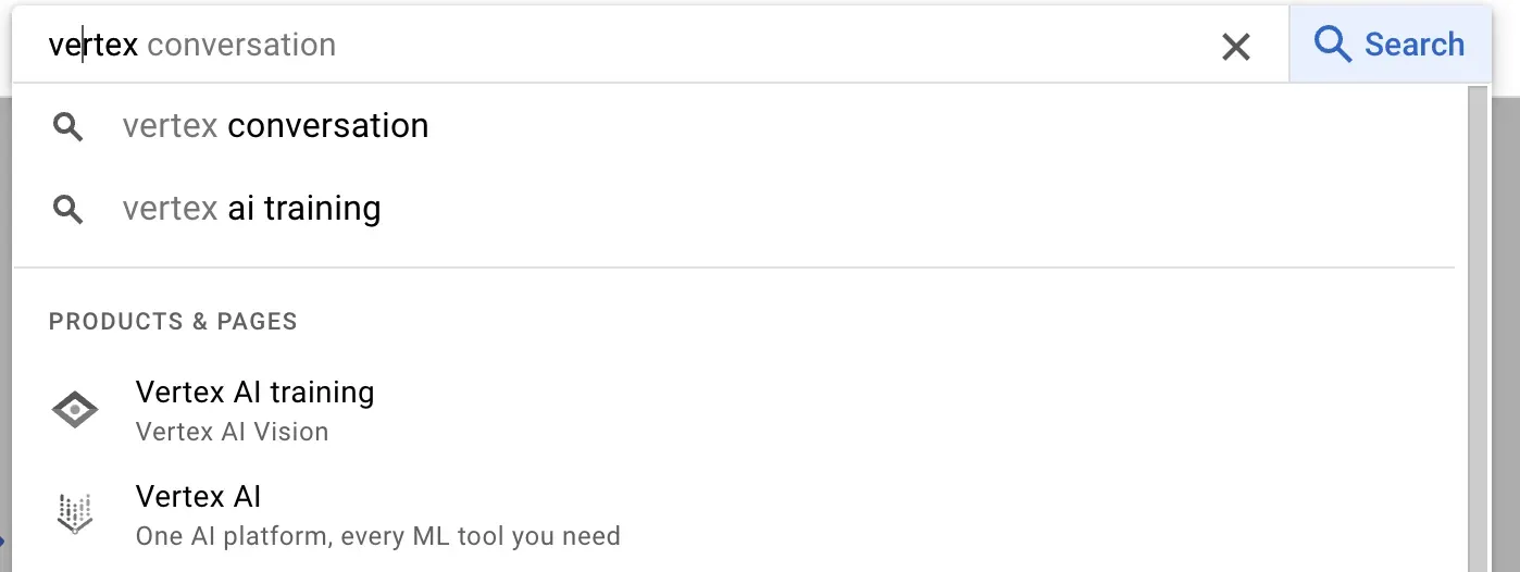 First, open Vertex AI in Google Cloud Platform. To do so, search for “Vertex AI” and select the “Vertex AI” option.
